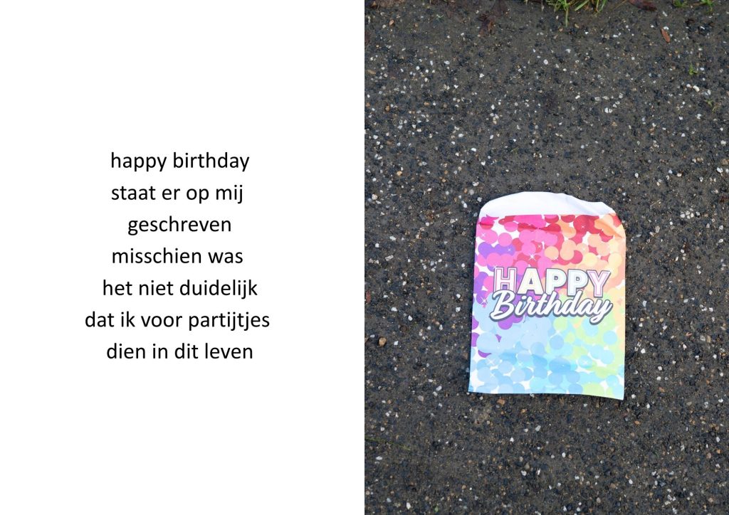 Des te bijzonderder is het dat veel verjaardagen van kinderen nog steeds worden gevierd met bergen aan plastic troep en wegwerpmateriaal. Zoals traktatiezakjes: zakjes waarin de jarige snoep en prullaria stopt. Deze deelt de jarige vervolgens uit in de klas of op diens kinderfeestje. Veel van deze zakjes zijn vandaag de dag nog steeds plastic. Veel zijn ook gemaakt van papier. Alle goede bedoelingen ten spijt, ook deze papieren zakjes onderstrepen de wegwerpindustrie.