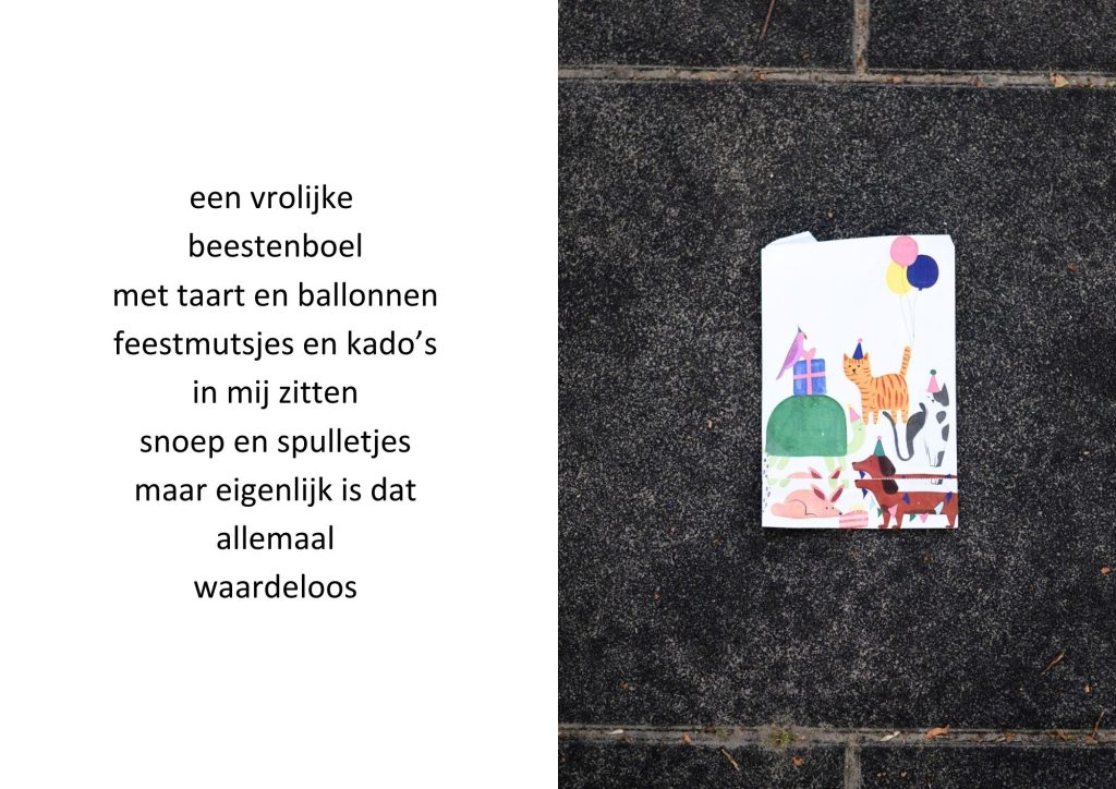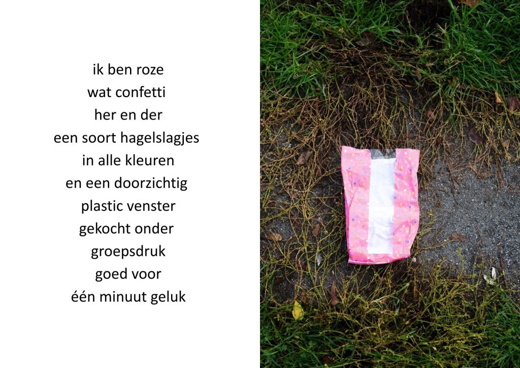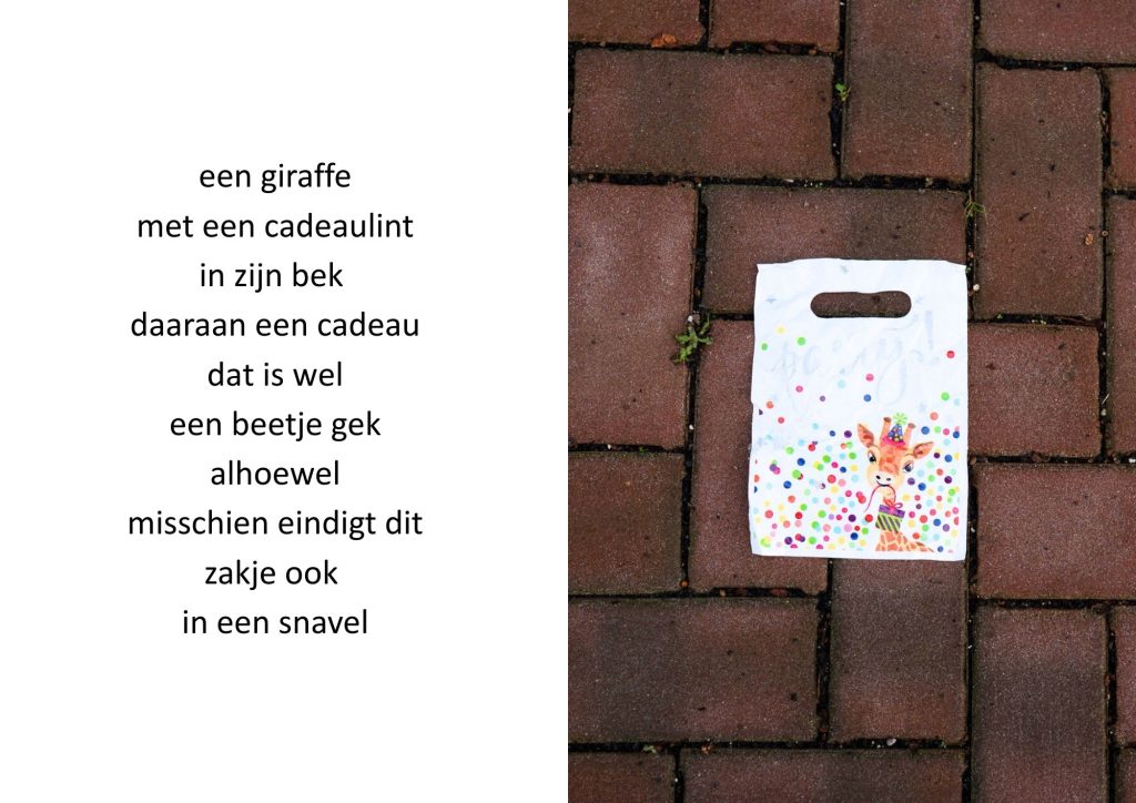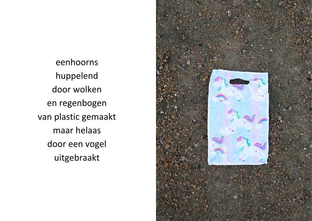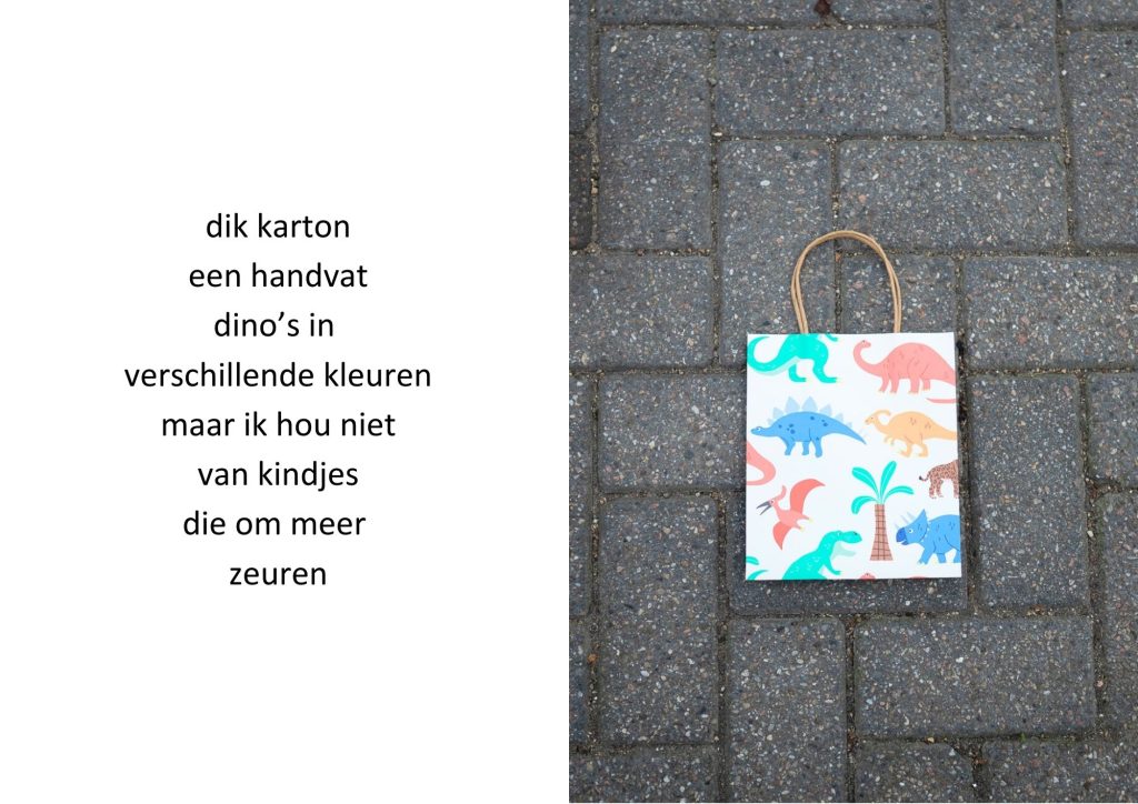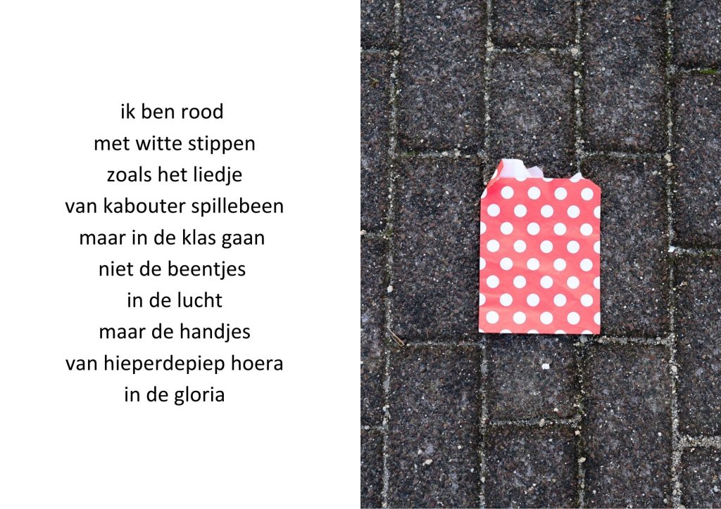 De traktatiezakjes verzamelde ik door de jaren heen wanneer mijn kinderen er weer mee thuiskwamen. De zakjes belandden op een stapel. Wat eerst grappig leek, werd voor mij steeds meer een spiegel van de wegwerpmaatschappij. Ik ging er gedichtjes bij schrijven, om het onderwerp ook een beetje luchtig te houden, in de hoop dat de boodschap daarmee beter aankomt.